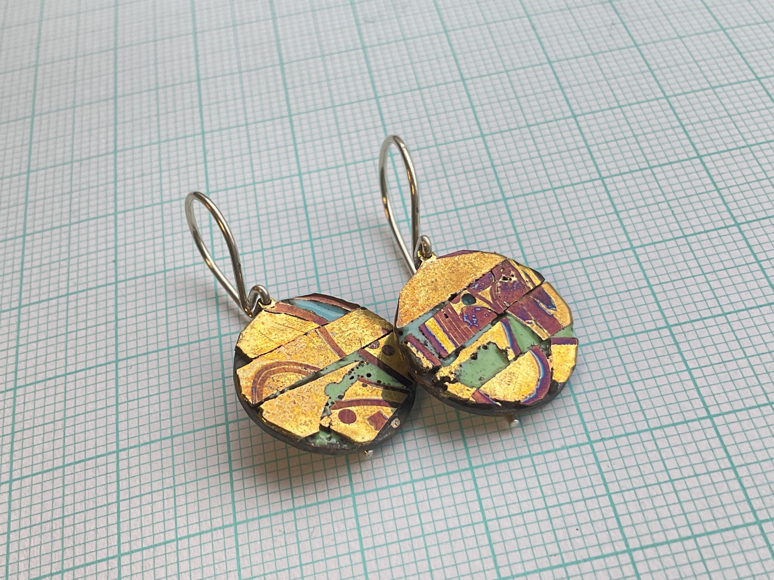 Enamel and mixed metal earring with silver earwire. Photographed on 10mm grid (If you are in the UK, the product page is currently showing prices inclusive of US, etc tariffs. It will appear in the basket at the UK price if you are in the UK. What a pain!)